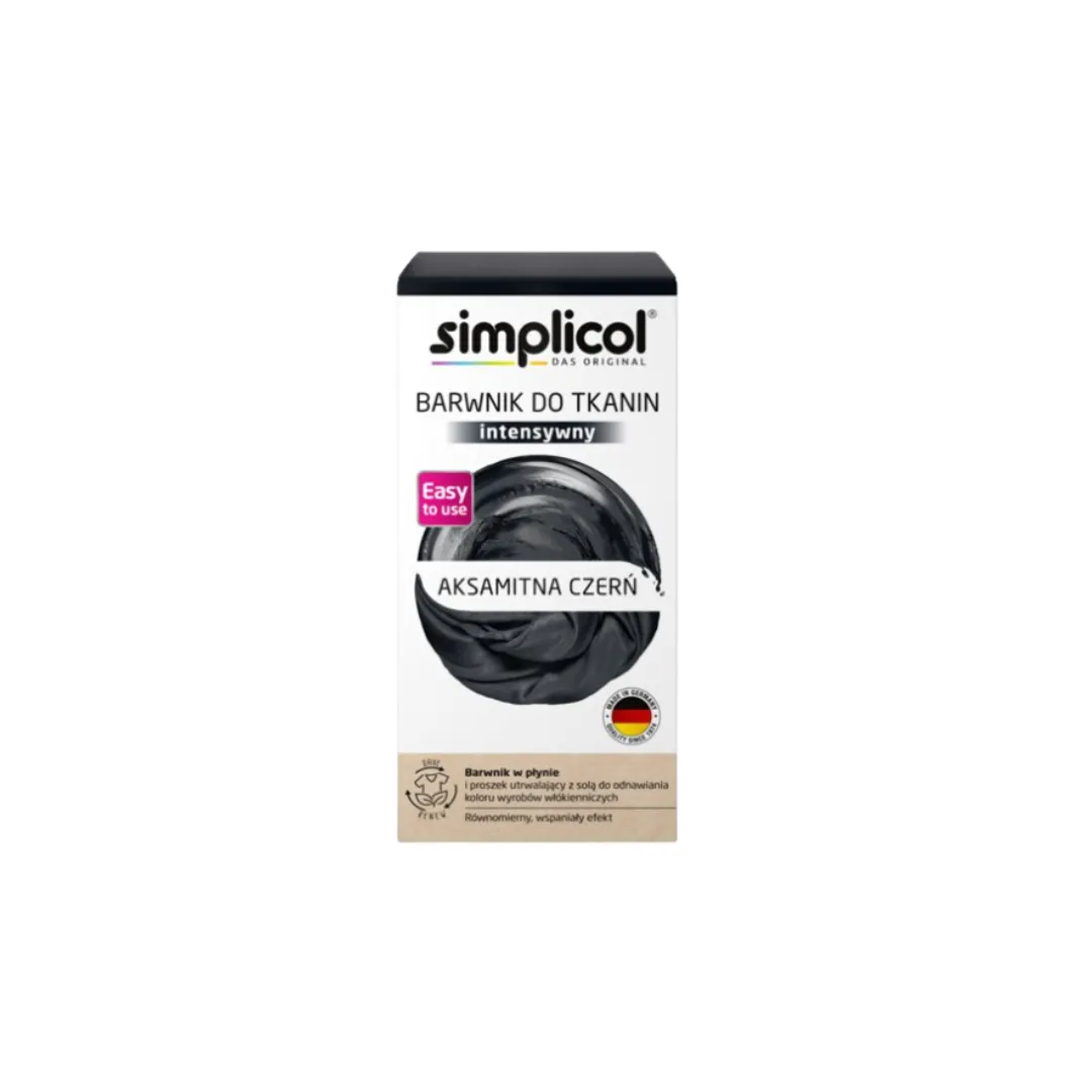 Barwnik do tkanin Simplicol Czerwona Aksamitna Intensywna to wysokiej jakości środek do kreatywnego odnawiania lub zmiany koloru ubrań i tekstyliów w pralce. Pozwala uzyskać głęboki, nasycony odcień **aksamitnej czerwieni** na bawełnie, lnie, wiskozie oraz tkaninach mieszanych.