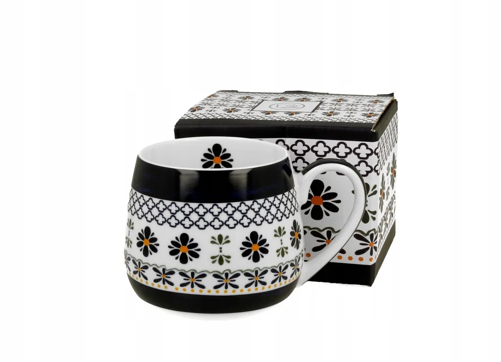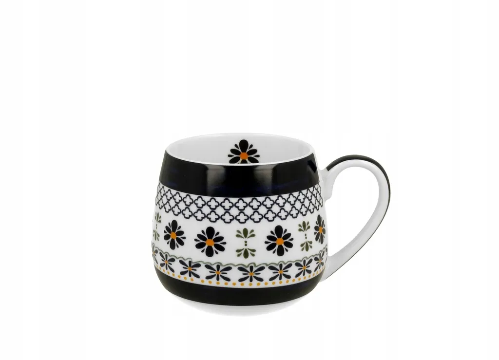 Kubek BARYŁKA z kolekcji INDYGO o pojemności 430 ml to harmonijne połączenie klasycznego, pękatego kształtu z wyrazistym, głębokim motywem kwiatowym. Wykonany z wysokiej jakości porcelany, zachwyca intensywnością barw i precyzją zdobień. To idealny wybór dla osób, które szukają naczynia o większej pojemności, które jednocześnie cieszy oko wyrafinowanym stylem.