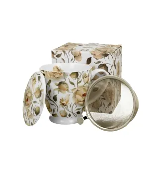 Kubek baryłka English Roses White 500 ml z zaparzaczem i stopką to idealny wybór dla osób ceniących elegancję, funkcjonalność i komfort codziennych rytuałów z herbatą lub kawą.