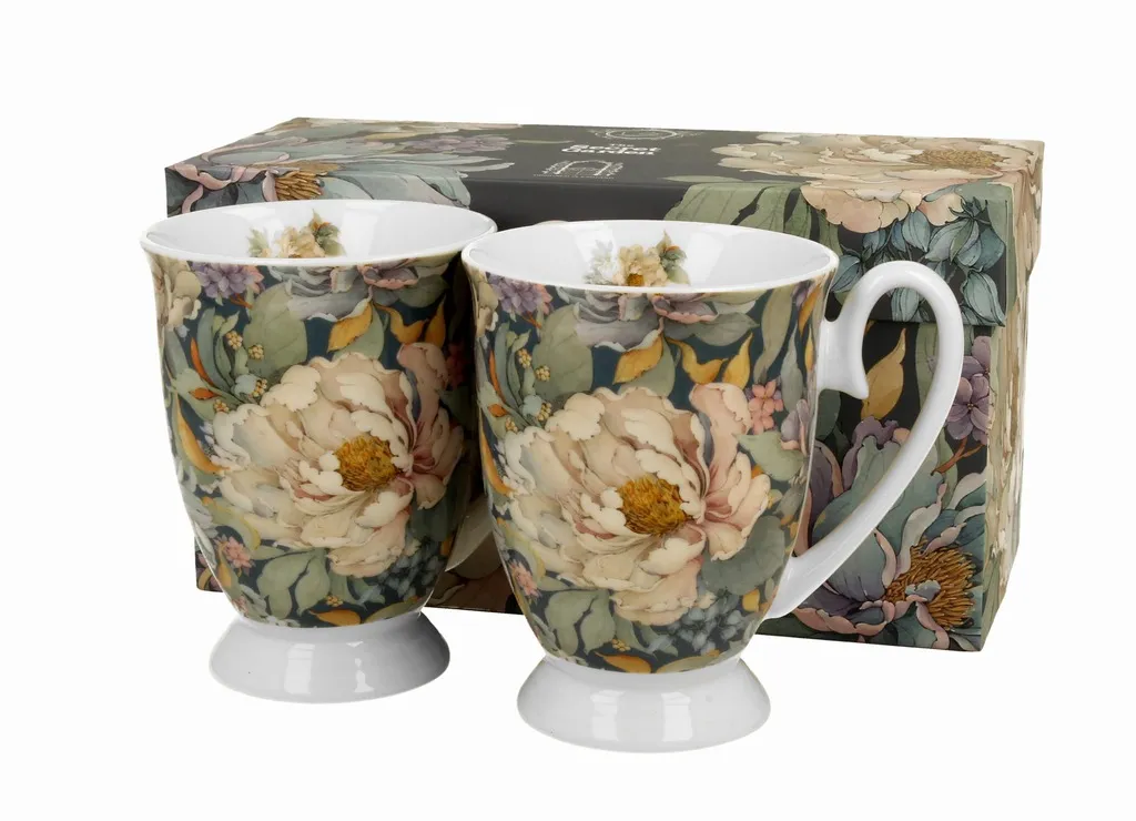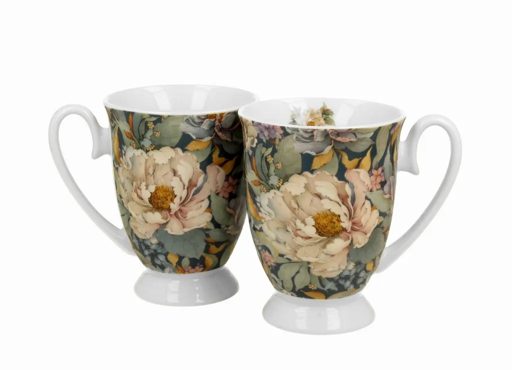 Komplet 2 kubków PEONY BLUE o pojemności 340 ml zachwyca delikatnym, kwiatowym motywem i elegancką stopką. Idealne do kawy i herbaty, tworzą spójny, stylowy zestaw.