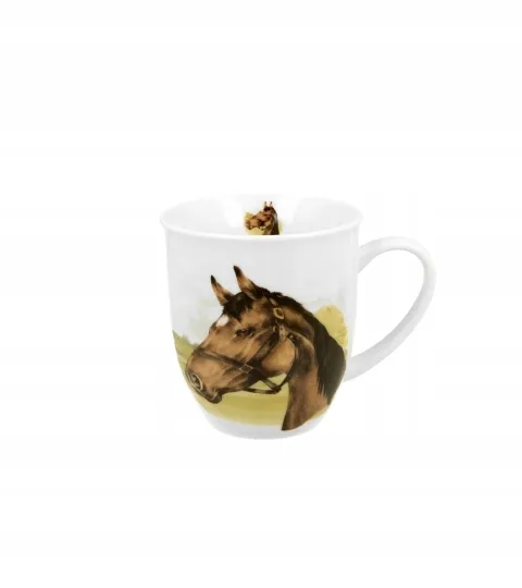 Kubek Portret Konia z serii Świat Zwierząt o pojemności 400 ml łączy wysokiej jakości porcelanę z realistycznym, artystycznym wizerunkiem konia. Idealny do kawy i herbaty.