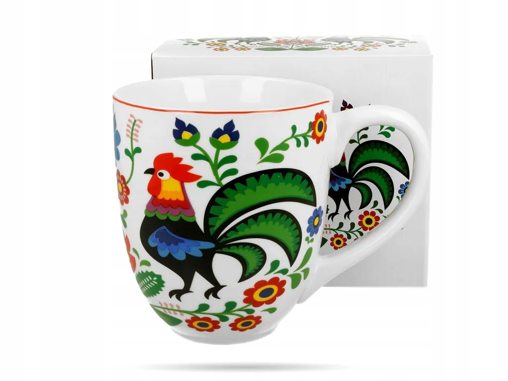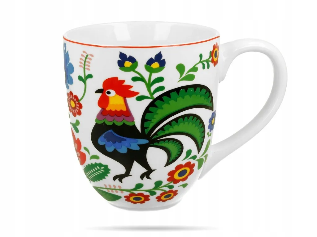Ogromny kubek XXL 1000 ml z motywem koguta w stylu folk. Wyjątkowy design i solidna porcelana tworzą idealne połączenie dla miłośników stylu etno i dużych porcji ulubionych napojów.