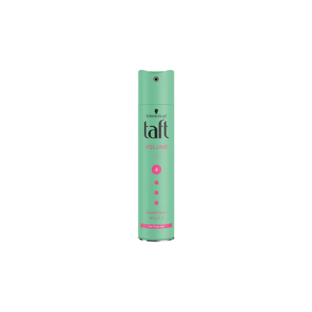 Taft Volume 4 zielony 250 ml to idealny lakier dla osób z włosami delikatnymi, które chcą uzyskać lekkość, objętość i trwałą fryzurę bez sztywności.