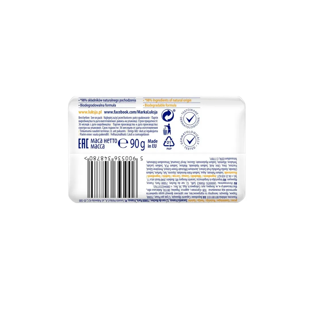 Mydło Luksja Jaśmin 90 g skutecznie oczyszcza skórę, zapewniając jej świeżość i komfort. Kwiatowy zapach jaśminu otula zmysły, sprawiając, że codzienna higiena staje się chwilą przyjemnego relaksu.