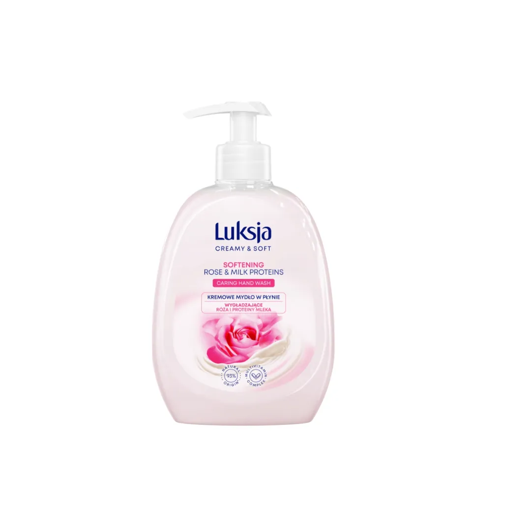 Luksja Creamy & Soft Rose Petals to mydło w płynie o urzekającym, zmysłowym zapachu płatków róży, które zamienia codzienną higienę rąk w luksusowy rytuał. Aksamitna, kremowa formuła skutecznie oczyszcza, jednocześnie intensywnie pielęgnując skórę, pozostawiając ją miękką i pięknie pachnącą.