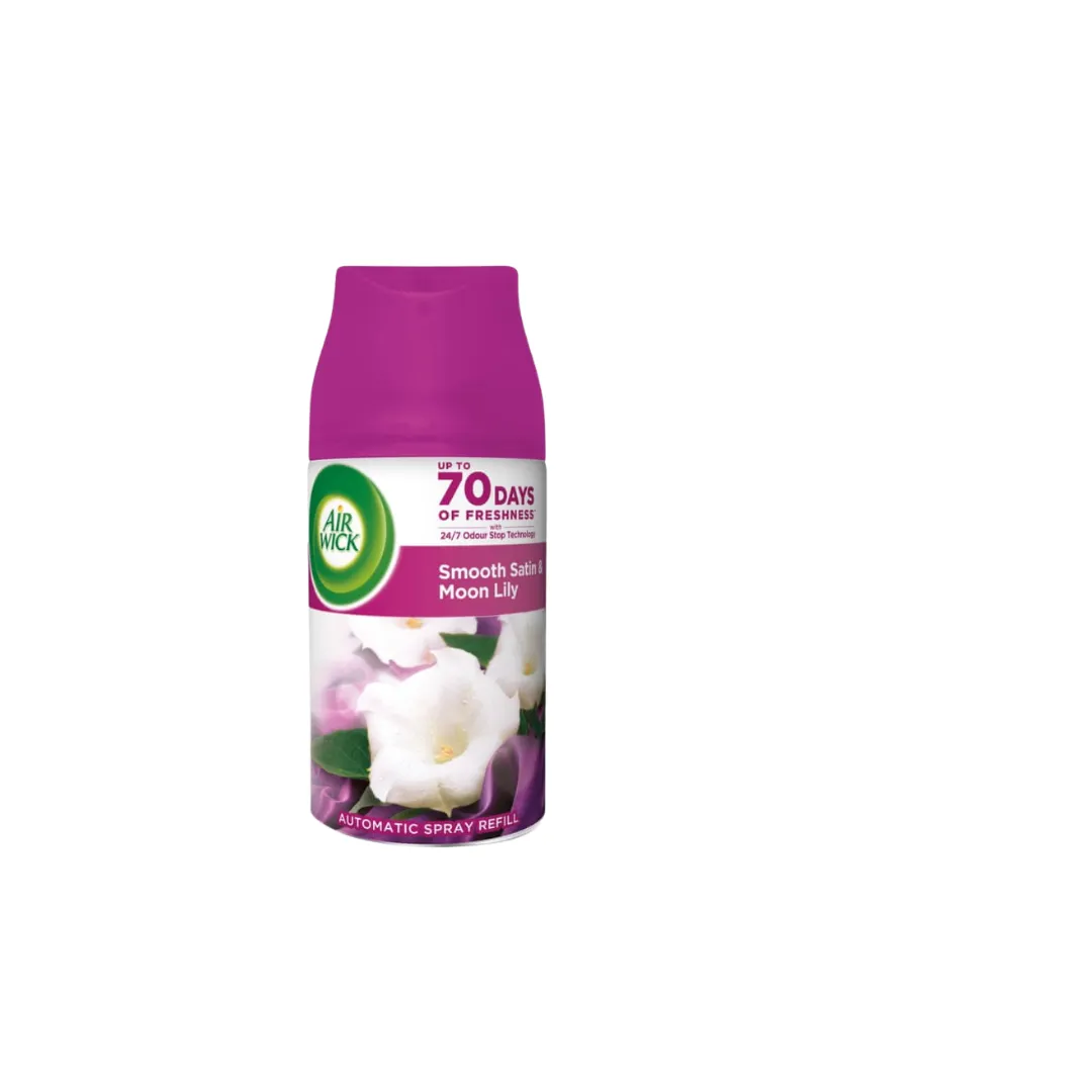 Wkład Air Wick 250 ml z zapachem Księżycowej Lilii Otulonej Satyną wypełnia wnętrze zmysłową, elegancką nutą. Zapewnia długotrwałą świeżość i wyrafinowaną atmosferę każdego dnia.