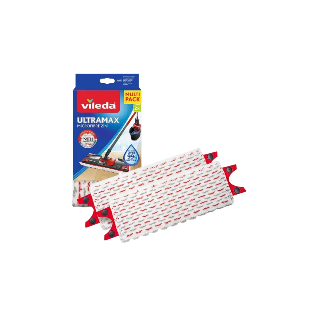 Zestaw 2 wkładów Ultramax Turbo od VILEDA (EAN: **4023103201262**) to praktyczne uzupełnienie mopa, które zapewnia skuteczne i wygodne mycie podłóg. Wkłady są kompatybilne z systemem wiadra z wirówką Vileda UltraMax i Turbo.